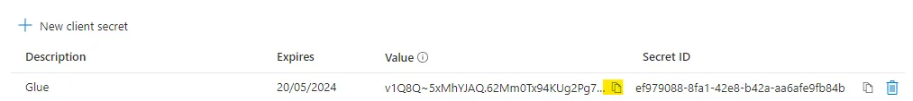 Be sure to copy the Value as it is only available when you initially create the secret. The Secret ID is not needed